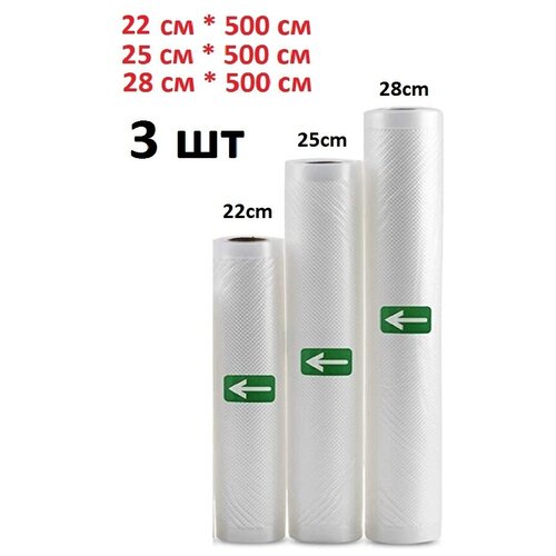 Рифленый вакуумный рулон набор 22,25,28*500 см/ Вакуумные пакеты / пакеты для вакууматора /пакеты для вакуумного упаковщика/ пакеты для сувид