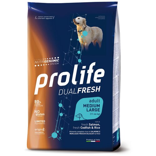 Корм для собак PROLIFE для средних и крупных пород, лосось, треска с рисом сух. 12кг