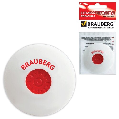 Ластик BRAUBERG "Energy", комплект 100 шт., 30х30х8 мм, белый, круглый, красный пластиковый держатель, 222472