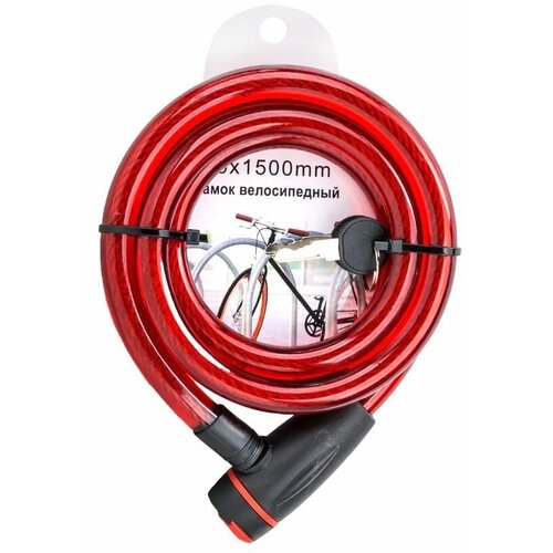 Замок велосипедный кодовый 10x1500 мм красный