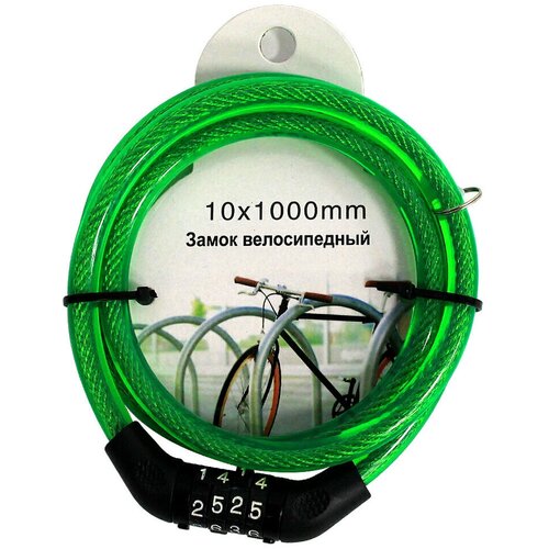 Замок велосипедный кодовый 10x1000мм зеленый
