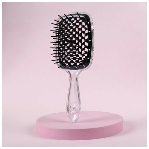 Расчёска массажная №21 прям-к 8,5х20,5см чёрн/прозр кор QF (1 шт.)