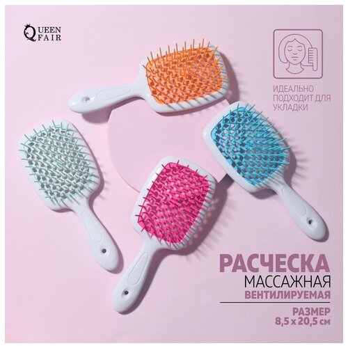 Расчёска массажная 21 прям-к 8,5*20,5(1)см Микс /бел кор QF Queen fair 7577623 .