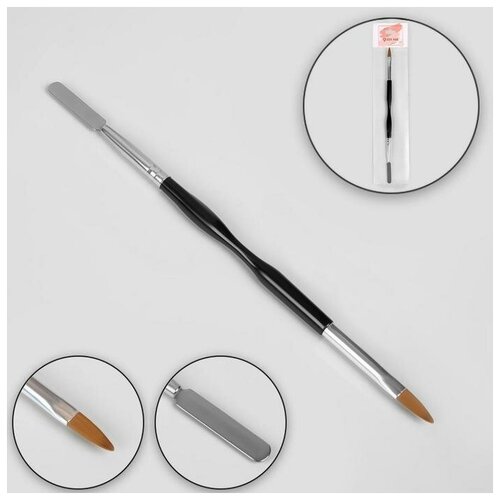 Кисть-шпатель для акрил-геля, лепесток, 21 см, ворс 7 × 17 мм, цвет чёрный/серебристый