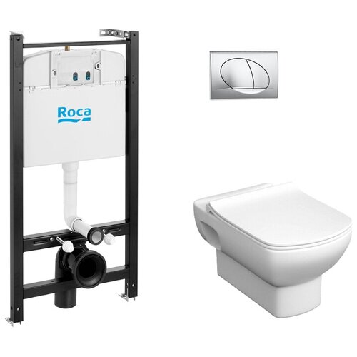 Комплект унитаза Roca Dama Senso ПЭК с инсталляцией и клавишей хром, тонкое сиденье микролифт (893104680, 8901140B1)