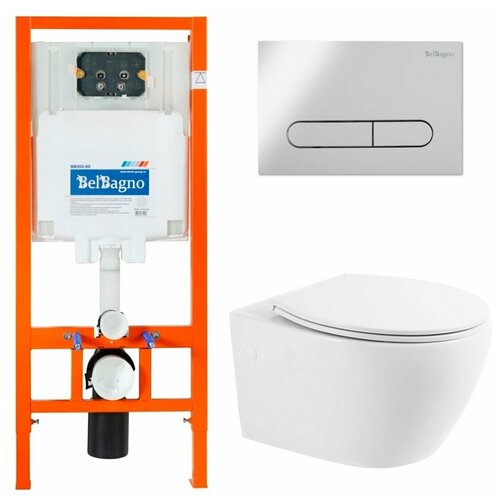 Комплект инсталляции с подвесным унитазом PROSPERO, сиденьем и кнопкой PROSPERO BELBAGNO BB507B/BB1055SC/BB002-80/BB005-PR-CHROME