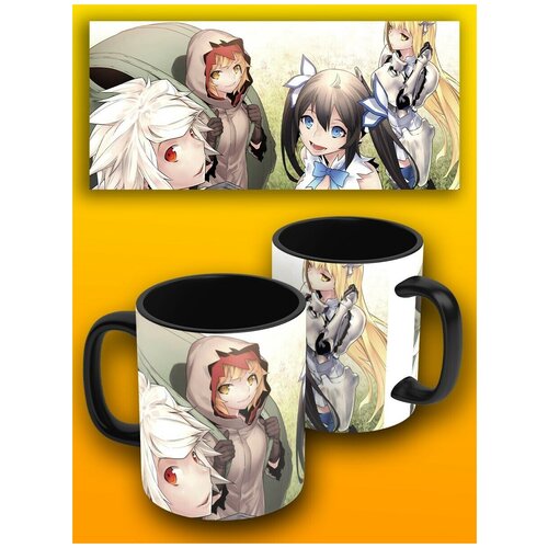 Кружка, 330 мл с принтом черная аниме может я встречу тебя в подземелье - 10432