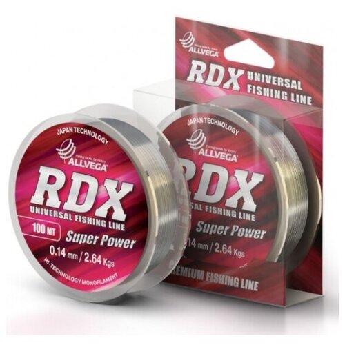 Леска Allvega RDX universal диаметр 0.3 мм, тест 9.78 кг, 100 м, прозрачная