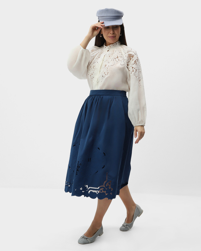 Хлопковая юбка с ажурными вставками в технике ришелье