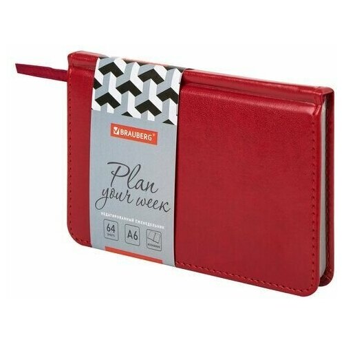 Еженедельник недатированный малый формат 95х155 мм А6 BRAUBERG "Rainbow", под кожу, 64 л., красный, 114484