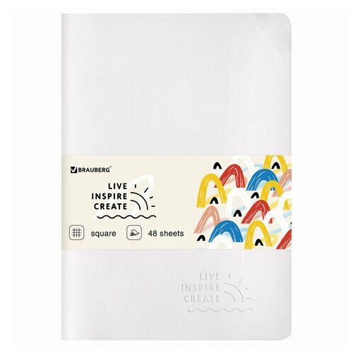 Тетрадь 48 л. в клетку обложка кожзам SoftTouch, сшивка, A5 (147х210мм), белый, BRAUBERG RAINBOW, 403881