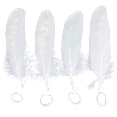 Украшение декоративное - Перья с принтом Бабочки, цвет белый, 1 упаковка