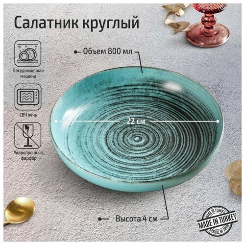 Салатник Lykke turquoise, d=22 см, цвет бирюзовый
