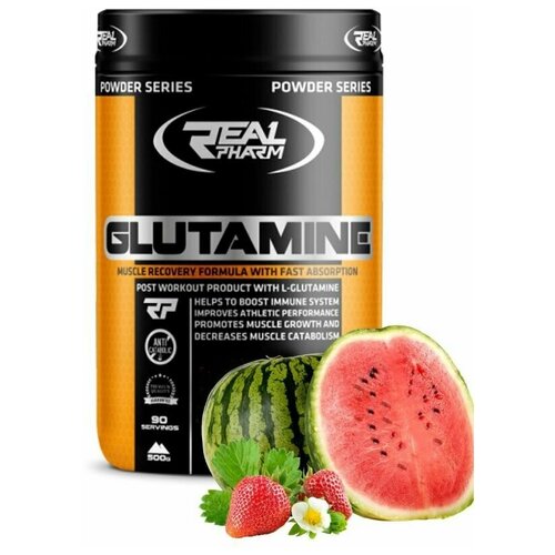 L-глютамин Real Pharm 500г (Клубника-Арбуз) / Аминокислота, 90 порций / Спортивное питание для спортсменов, мужчин и женщин