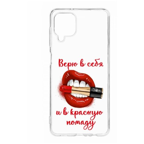 Чехол на Samsung Galaxy A12 Kruche Print Red lipstick, защитный силиконовый бампер с рисунком, противоударный, пластиковый кейс, накладка с принтом
