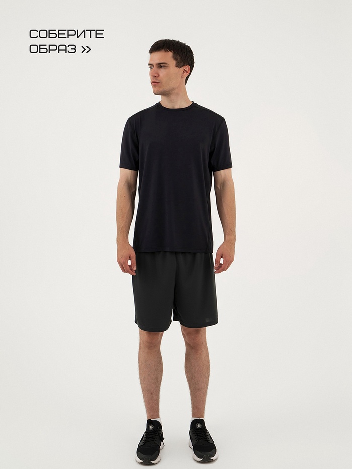 Футболка мужская со вставками, базовая, размер M (48), цвет черный