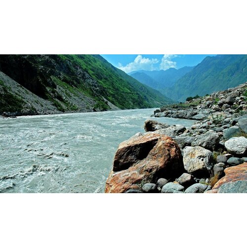 Картина на холсте 30x40 LinxOne "Water river mountains rocks" интерьер для дома / декор на стену / дизайн