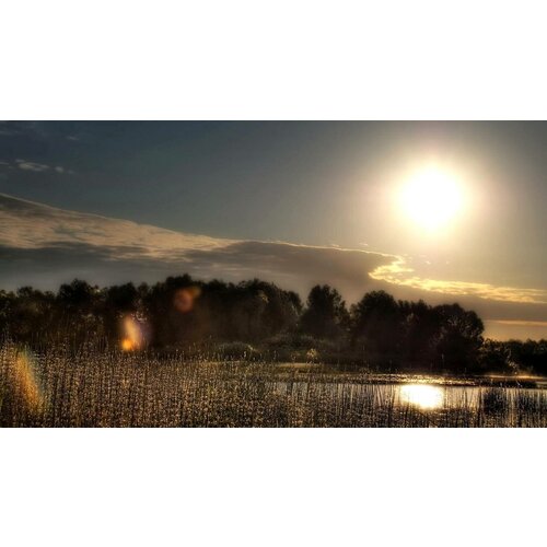 Картина на холсте 50x60 LinxOne "Пейзаж закат river sun" интерьер для дома / декор на стену / дизайн