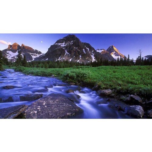 Картина на холсте 30x40 LinxOne "Mountain river field landscape" интерьер для дома / декор на стену / дизайн