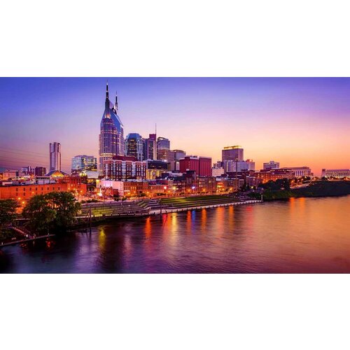 Постер на экокоже 40x50 LinxOne "Evening river city" интерьер для дома / декор на стену / дизайн