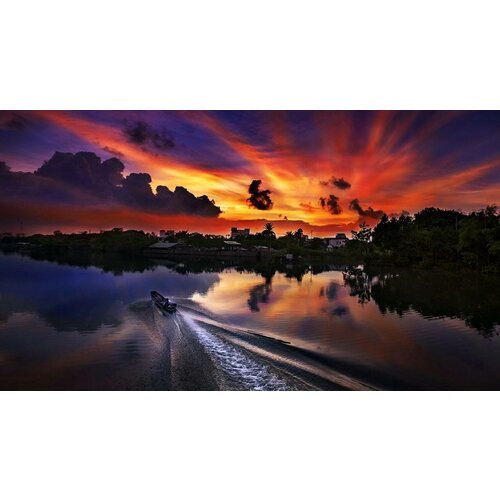 Постер на экокоже 60x80 LinxOne "Sunset set river thanhfab" интерьер для дома / декор на стену / дизайн