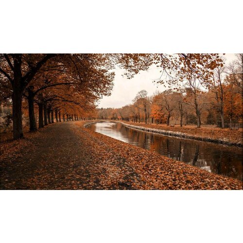 Картина на холсте 30x40 LinxOne "View water river leaves fall" интерьер для дома / декор на стену / дизайн
