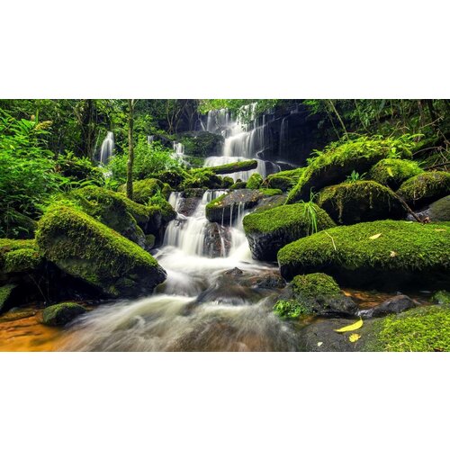 Постер на экокоже 60x100 LinxOne "Forest stones river" интерьер для дома / декор на стену / дизайн