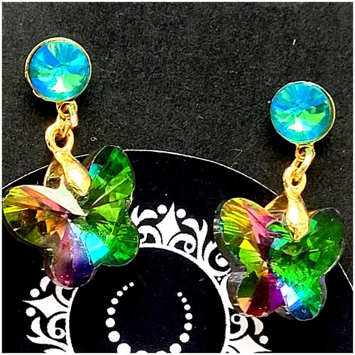Серьги пусеты , бижутерный сплав, кристаллы Swarovski, размер/диаметр 12 мм., мультиколор