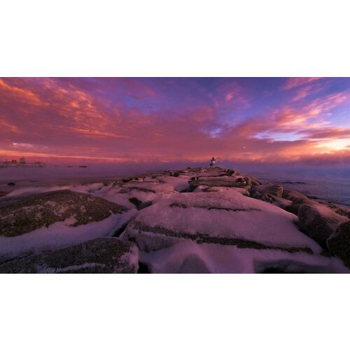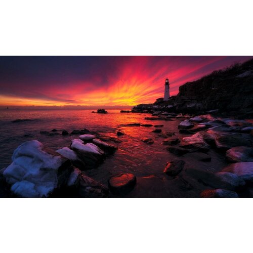 Картина на холсте 50x80 LinxOne "Lighthouse rock sunset ice" интерьер для дома / декор на стену / дизайн