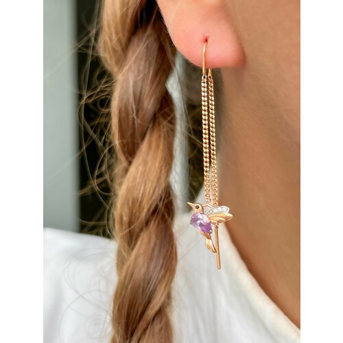 протяжки, Колибри Серьги Trade Jewelry из серебра 925 пробы (покрытие золото 585) с александритом и фианитом