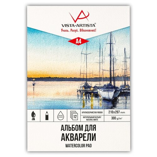 VISTA-ARTISTA WCRP-A4 Альбом для акварели 300 г/м2 A4 30 х 21 см склейка с одной стороны 12 л. rough / крупнозернистая