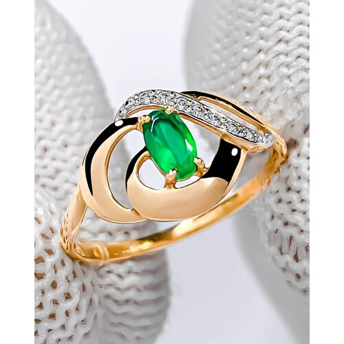 утонченное Кольцо Trade Jewelry из красного золота 585 пробы с зеленым агатом и белыми фианитами