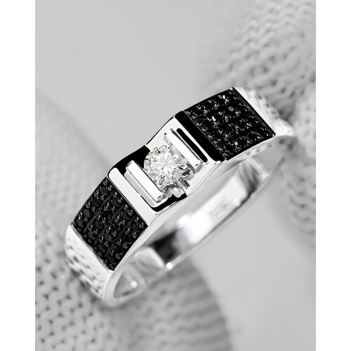 Кольцо Trade Jewelry из белого золота 585 пробы с бриллиантами белыми и черными