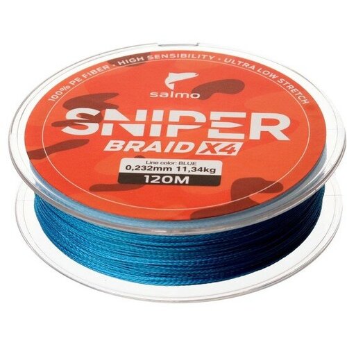 Шнур плетеный Salmo Sniper BRAID, диаметр 0.23 мм, тест 11.34 кг, 120 м, синий