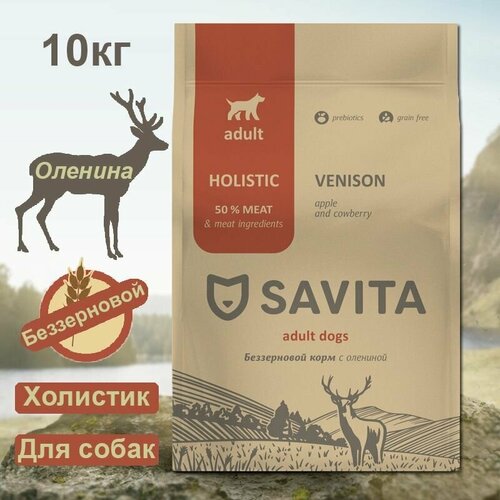 Сухой корм SAVITA для взрослых собак с олениной, беззерновой, 10 кг