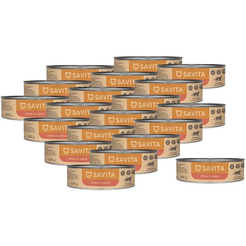 SAVITA консервы для кошек и котят. Цыплёнок с лососем 0,1 кг. х 20 шт.