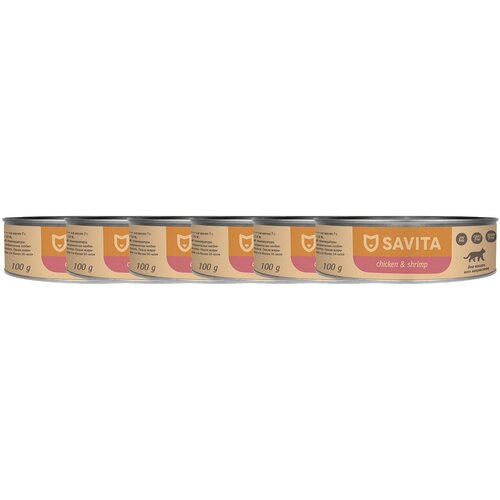 SAVITA консервы для кошек и котят. Цыплёнок с креветкой 0,1 кг. х 6 шт.
