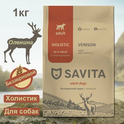 Сухой корм SAVITA для взрослых собак с олениной, беззерновой, 1 кг