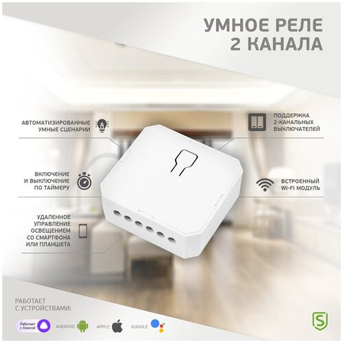Умное Wi-Fi встраиваемое реле Securic двухканальное Sec-hv-201/2w .