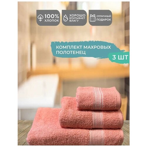 Комплект из 3 махровых полотенец SELENA Лососевый, 35x60, 50x90, 70x130 см