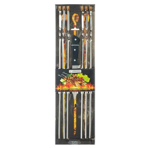 Шампуры уголком, 6 штук, толщина 1,5 мм, нож, размер 58,5 х 1 см