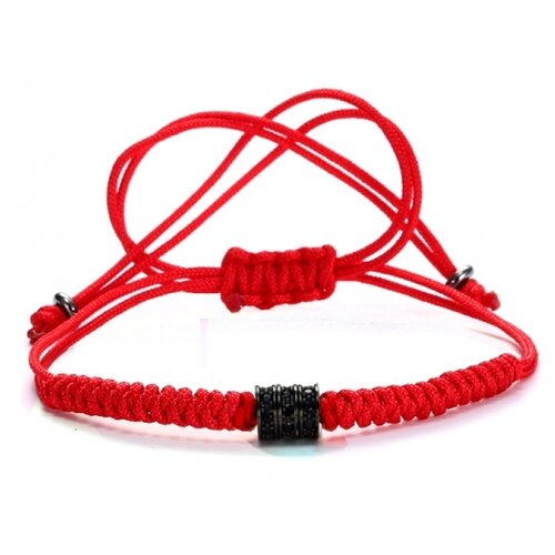 Браслет их хлопка на прочной эластановой нити, регулируемый, инкрустирован кубическими цирконами, красная нить.