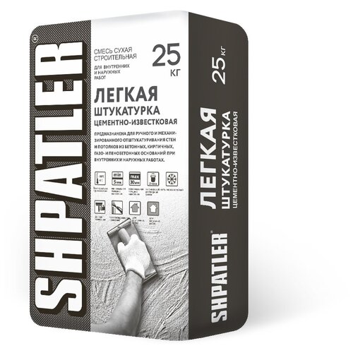 Цементно-известковая штукатурка шпатлер Легкая, 25 кг. Для внутренних и наружных работ