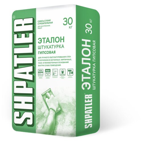 Гипсовая штукатурка шпатлер Эталон, 30 кг, Для ручного оштукатуривания стен и потолков.