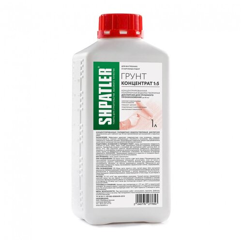 Грунт концентрат 1:5 Шпатлер, 1л., под покраску, оклейку обоями, шпатлёвку, клей, облицовку.