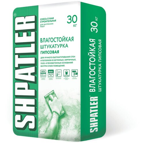 Гипсовая штукатурка Шпатлер Влагостойкая, 30 кг, для сухих и влажных помещениях. Глянцуется.