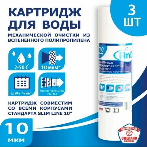 Картридж SL10 нитяной 50 мкм для холодной воды для Гейзер, Барьер, Аквафор, AquaPro, NatureWater и совместимых (к-т 3 шт.)