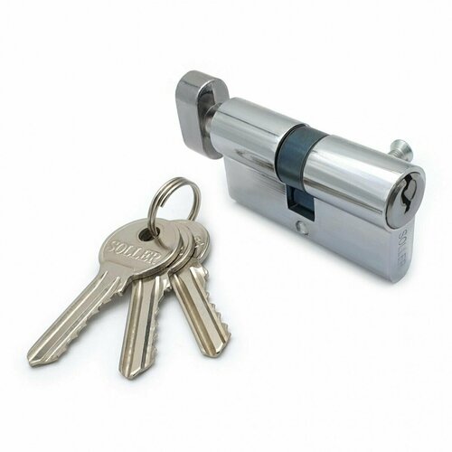 Механизм цилиндровый SOLLER FV3 хром 60 мм, 3 ключа ключ/вертушка, латунь/металл (25+10+25)