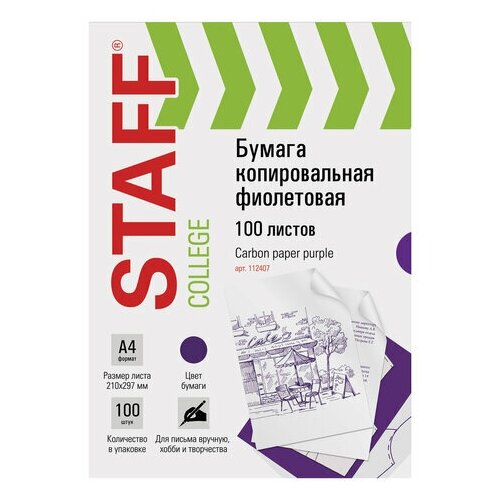 Бумага копировальная (копирка), комплект 5 шт, фиолетовая, А4, 100 листов, STAFF, 112407