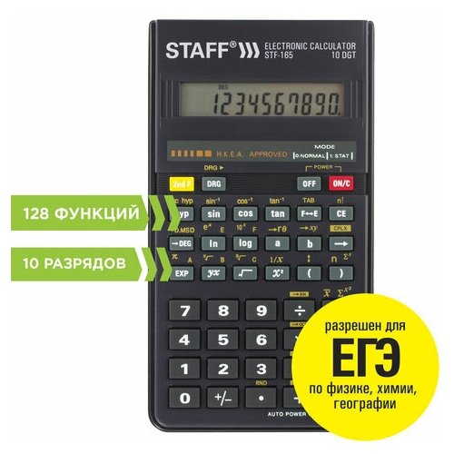 Калькулятор инженерный STAFF STF-165 (143х78 мм), комплект 50 шт, 128 функций, 10 разрядов, 250122